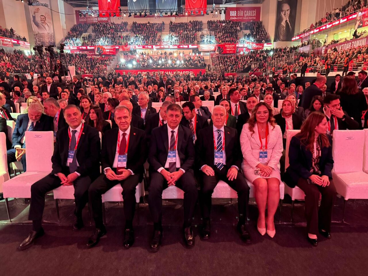 CHP Genel Başkanı Özgür Özel, Kurultay salonuna eşi Didem Özel ile gelerek partilileri selamladı.