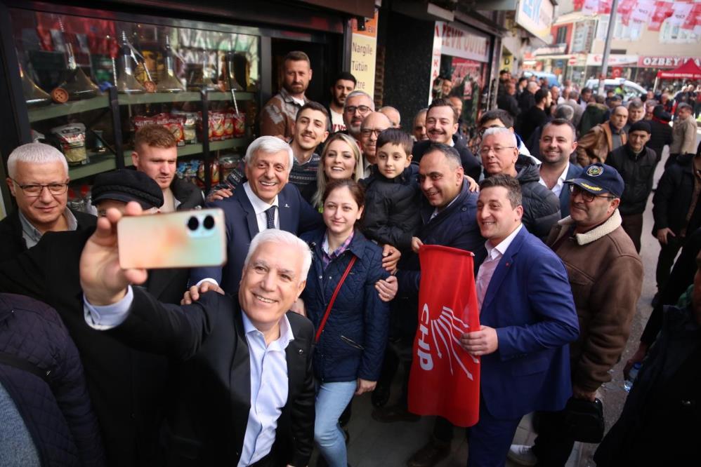 Bozbey ve ekibi seçim ofisi açılışının ardından pazarcıları ve esnafı ziyaret etti.