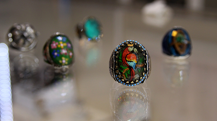 Kolye ucu ve yüzük taşı gibi takılar işlediğini anlatan Küçükdemirel, tamamlanan taşa yukarıdan bakıldığında işlemin görüldüğünü dile getirdi.