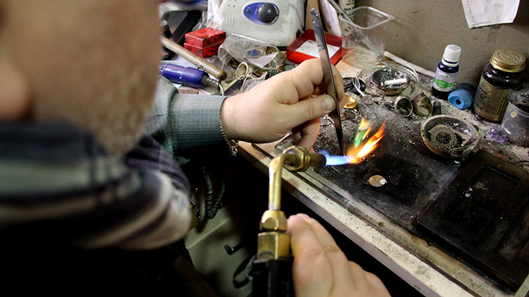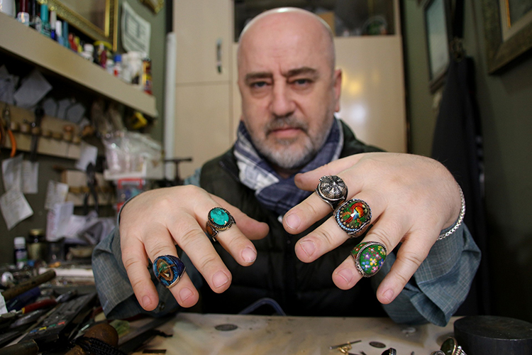 “Şimdi tasarımdan tasarıma değişiyor. Mesela taşı tersten oyarak tarihi mekanlar sığdırıyoruz diyoruz ya, sadece taşı oymak oyalanmazsam iki günde bitiyor. Bir de yüzüğün kasası var. Kasa da bir günümü alıyor. Çok oyalanmazsam yüzüğü 3,5 günde bitiriyorum. Taş içine oyma işi olmazsa normal bir yüzük yapılacaksa bu da aşağı yukarı bir buçuk gün içerisinde falan bitiyor.”