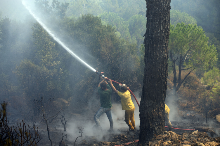 “Bu uçaklardan bir tanesi de geçtiğimiz haftalarda Türkiye’ye getirmiş olduğumuz Be-200, ağır sınıf yangın söndürme uçağı. Onu da buraya yönlendirdik. Şu anda arkamızda bulunan dumanlarını gördüğümüz kuzey hattı yangının çıkış noktası olan Alhisar köyüne yakın bir nokta. Maalesef burada da kırsal alanda başlayıp ormana sirayet eden bir yangın var. Kesin olmamakla beraber yine bir dikkatsizlik sonucu maalesef şu andaki duruma geldiğimizi düşünüyoruz.”