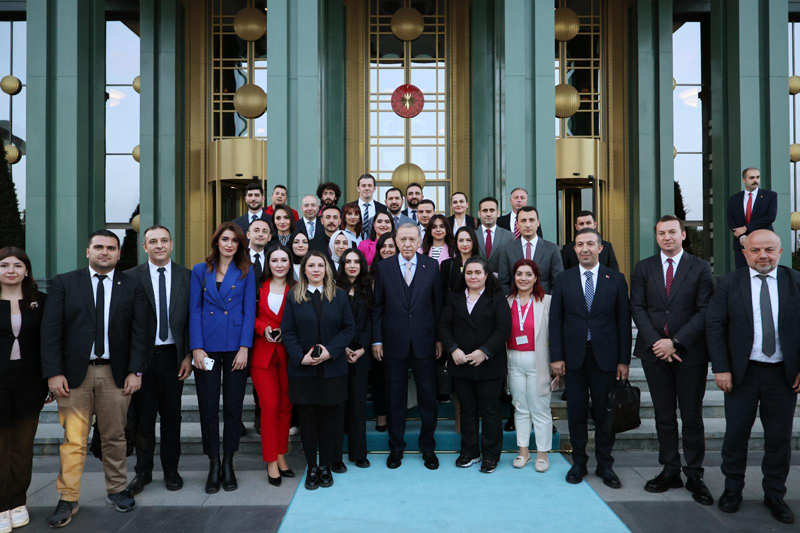 Basın mensuplarının Ramazan Bayramı’nı kutlayan Cumhurbaşkanı Erdoğan, daha sonra gazetecilerle Külliye’nin seyir tepesine yürüdü.