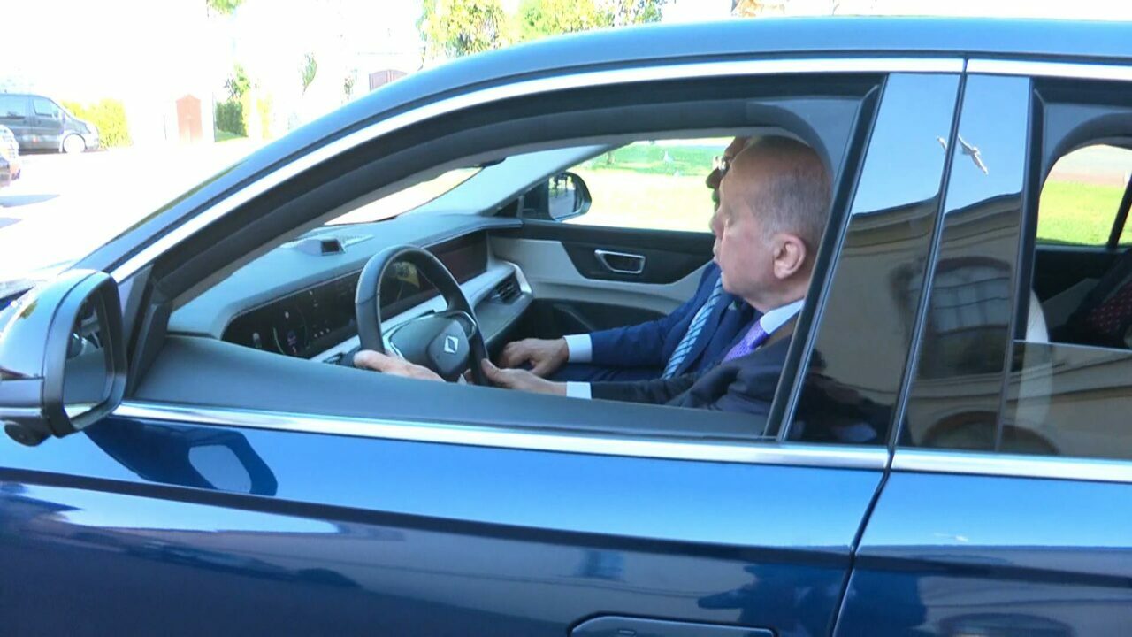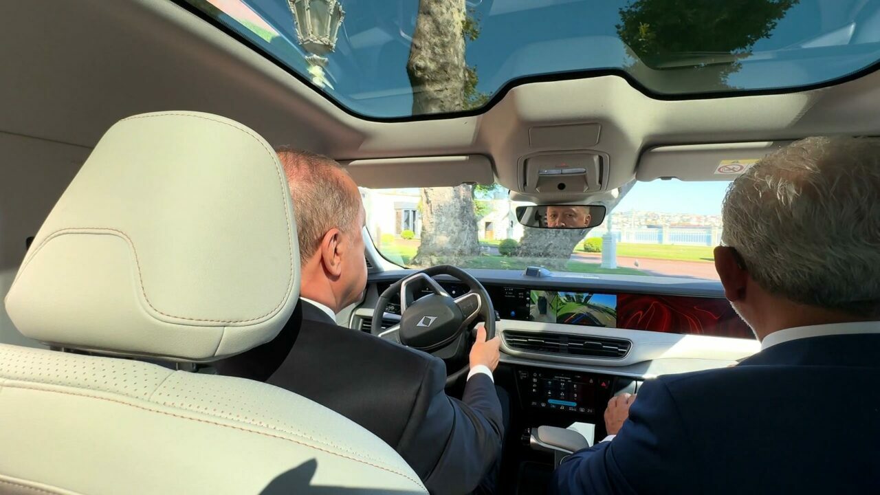 Cumhurbaşkanı Erdoğan, İstanbul’da Togg’un sedan modeli olan T10F’in direksiyonuna geçti.