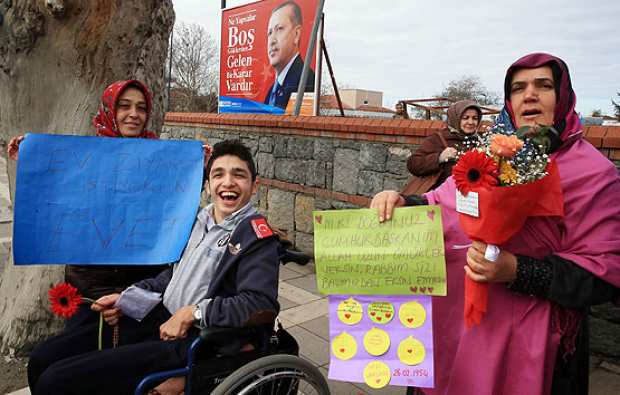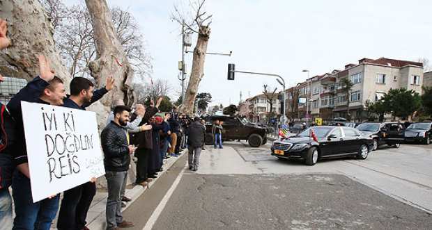 “Rabbim seni ümmetin başından eksik etmesin. İyi ki doğdun, iyi ki varsın Reis” ve “Evet” yazan pankart ve dövizler taşıyan grup, zaman zaman “Recep Tayyip Erdoğan”, “İşte ordu, işte komutan” ve “Türkiye seninle gurur duyuyor” sloganları attı.