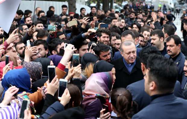 Kısıklı’daki konutundan Mabeyn Köşkü’ne geçen Erdoğan, AK Parti İstanbul Gençlik Kolları üyeleri tarafından karşılandı.