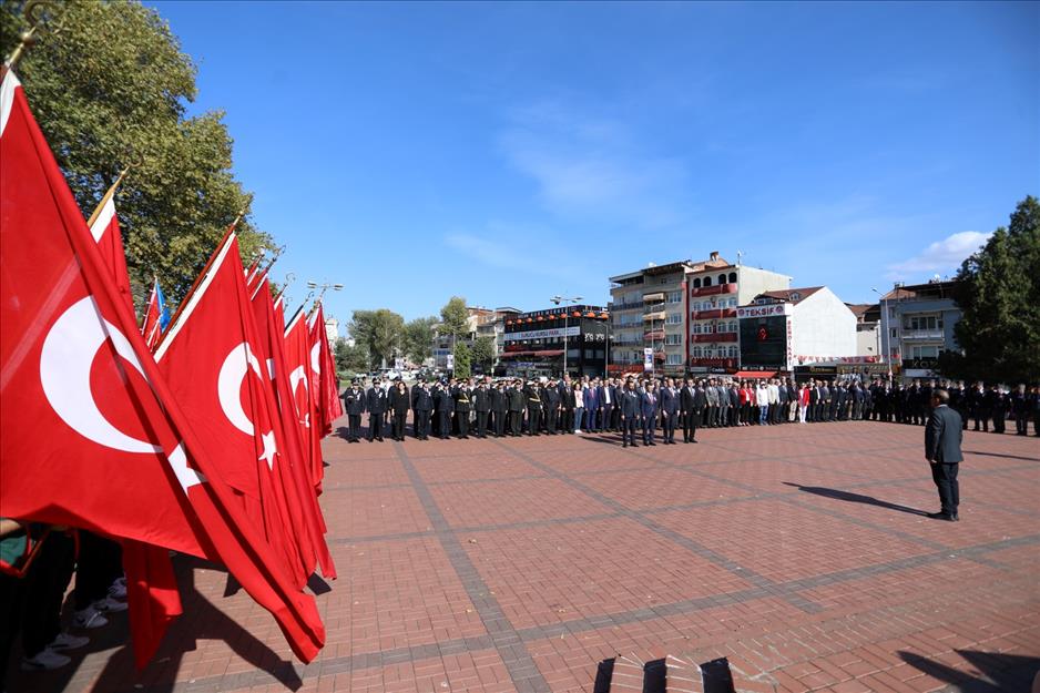 ÇELENK SUNULUP SAYGI DURUŞU VE İSTİKLAL MARŞI OKUNDU