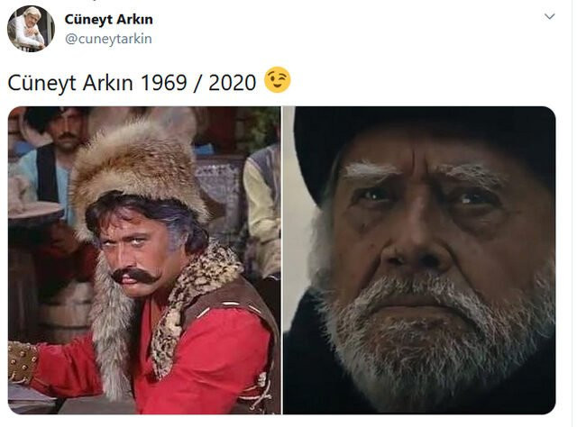 Usta oyuncu, 1969 yılında rol aldığı film ve Kuruluş Osman setindeki karesini bir arada paylaşarak sosyal medya akımına uydu.