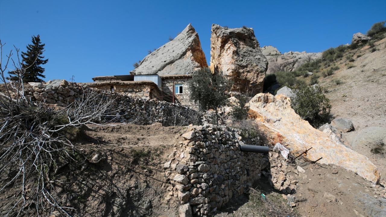 Evin sahibi Hacı Bulgur, depremlerin etkisiyle dev kaya parçasının yerinden ayrıldığını söyledi.
