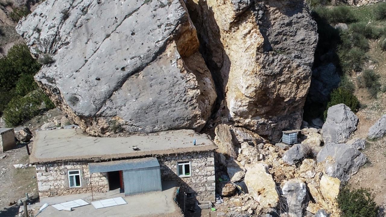 Tonlarca ağırlıktaki büyük kaya parçası, artçı sarsıntılarla hareket ederek Hacı Bulgur’a ait tek katlı eve çarparak ortadan ikiye ayrıldı.