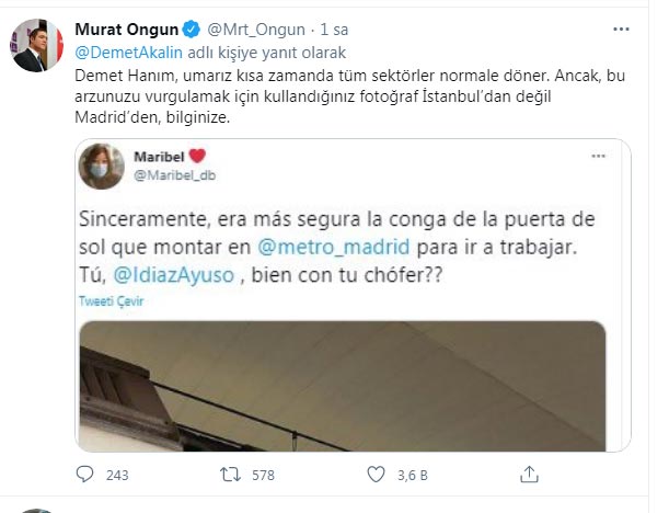 Akalın, “Söylenecek çok şey var… Metrolar, otobüsler, uçaklar hınca hınç… Nereye kadar devam edecek? Ee sonsuza kadar ‘bakacağız mı?’ diyeceksiniz. Günah keçisi restoranlar… Yazık!” notunu yazdı.