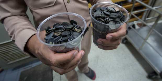 Başkent Bangkok’ta ameliyat edilen “Bank” adlı dişi yeşil deniz kaplumbağasının, bölge halkının uzun zamandır içine bozuk para attığı havuzda yaşadığı belirtildi. Toplam ağırlığı 5 kilogramı bulan bozuk paraların kaplumbağanın midesinden bir top gibi sarktığı, karın kabuğunu kırarak kaplumbağanın hayatını tehlikeye atan enfeksiyona yol açtığı kaydedildi.