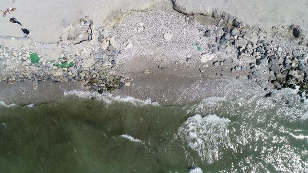 Vahap Topal ise, “Devamlı biz burada olduğumuz için bunu hep yaşıyoruz. Çekilir. Poyraz olduğu zaman daha çok gider deniz. Lodos olduğu zaman biraz daha gelir bu tarafa doğru. Poyraz olduğu zaman biz buradaki taşları çıkarıp örebiliyoruz yani. Burada rahatlıkla geziyoruz” şeklinde konuştu.
