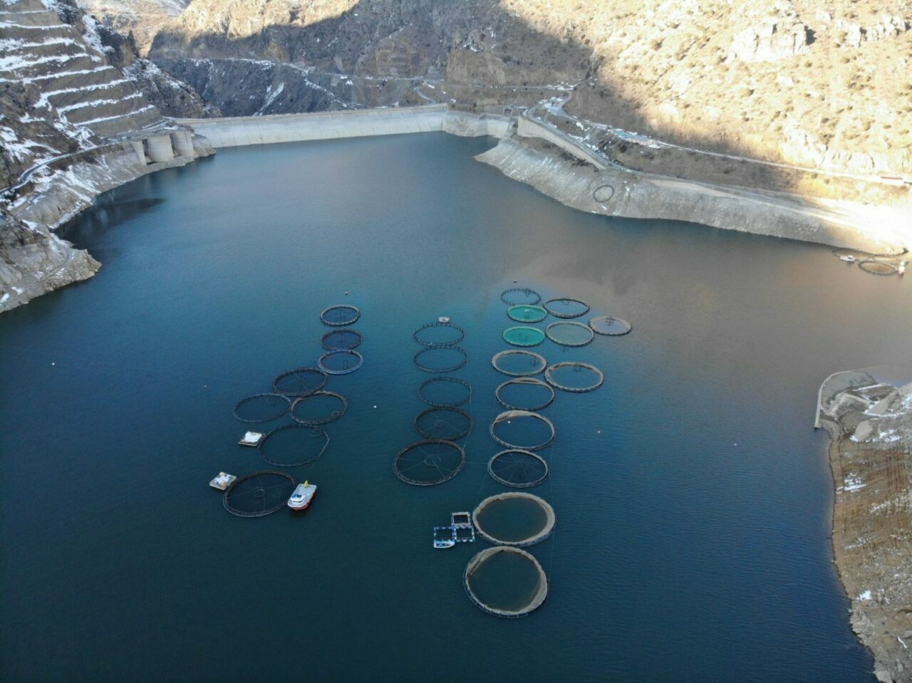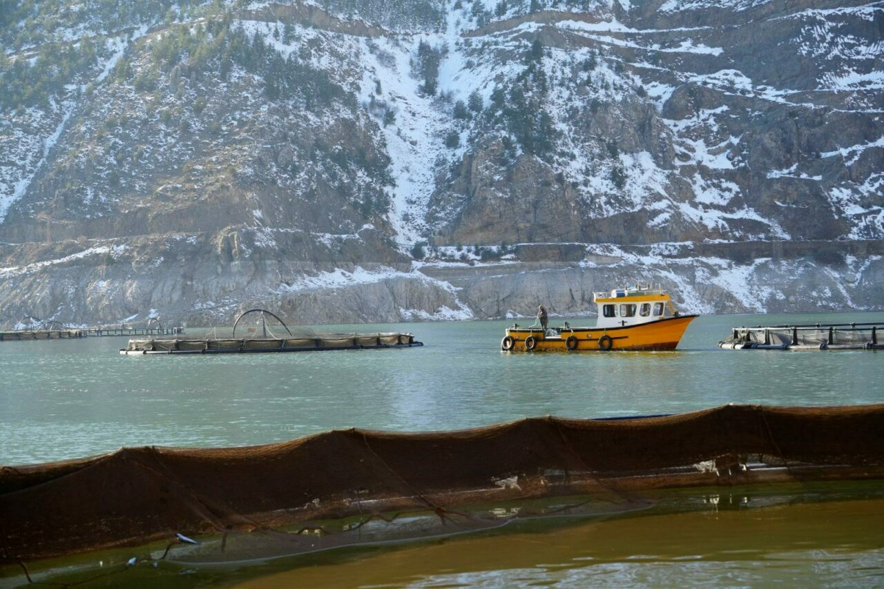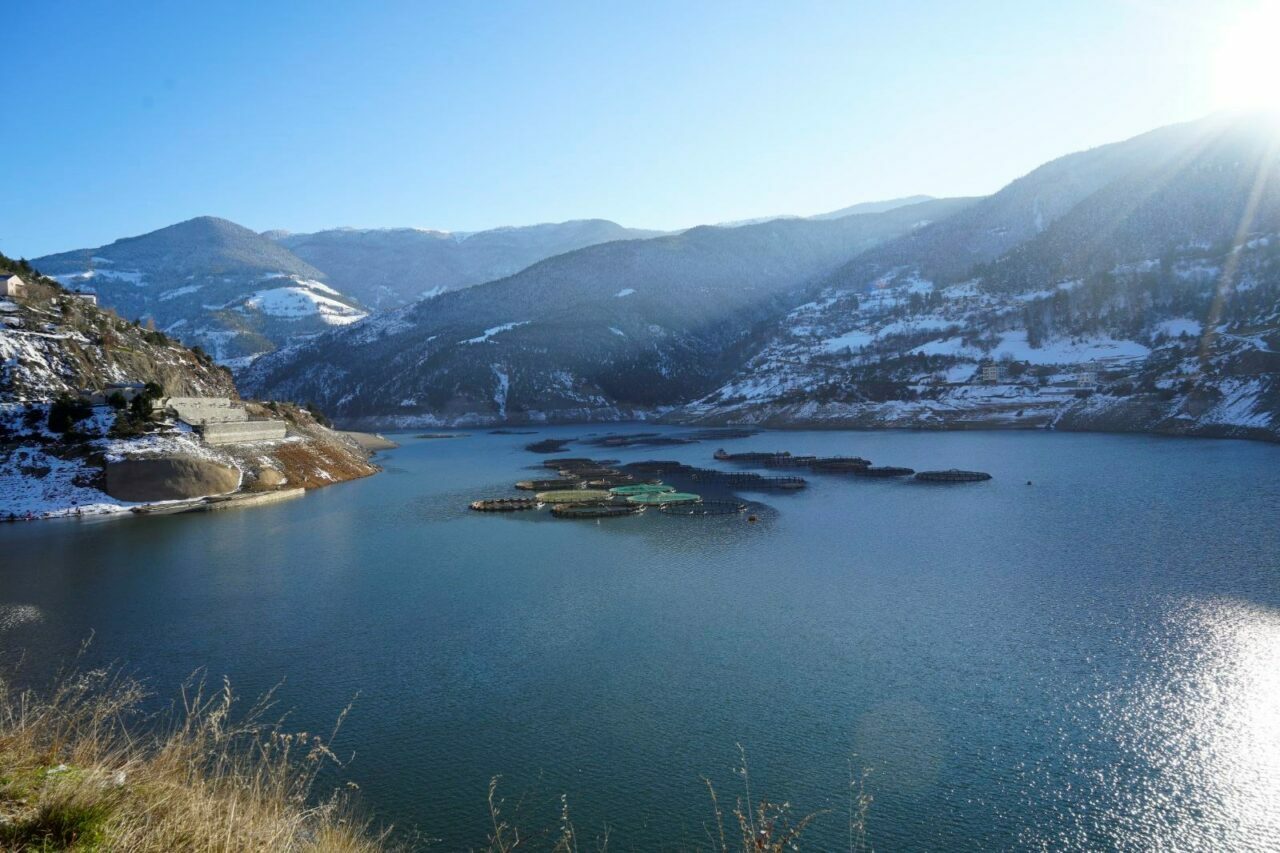 Gümüşhane’nin Torul ilçesine bağlı Kirazlık köyünde, Türkiye’nin en hızlı akan çaylarından birisi olan Harşit Çayı üzerine elektrik enerjisi üretmek için kurulan Torul Baraj Gölünde yıllardır hem elektrik üretiliyor hem de Gökkuşağı alabalığı üretimi yapılıyor.