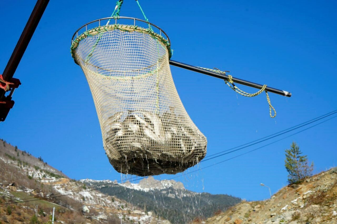Torul Barajı’nda bulunan çiftliklerinde yetişen Gökkuşağı alabalıklarının deniz çiftliklerinde ihracata hazır hale gelmesinin ardından yaklaşık 410 milyon dolarlık bir ihracat rakamı ile farklı ülkelere gönderildiğini ifade eden Su Ürünleri Yüksek Mühendisi Ahmet Bingöl, şu ifadeleri kullandı: