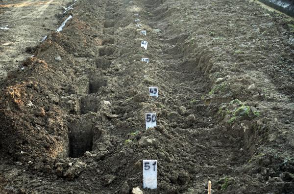 Cenazeler işlemlerin hızlı yapılabilmesi ve karışıklığı önlemek için mezar taşlarına isim yerine numara veriliyor.