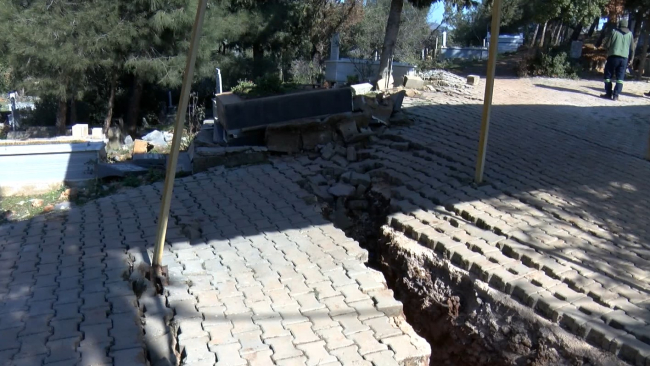 Fay kırıkları mezarlıkta yarıklara, bazı mezarlarda hasara ve taşların da parçalanmasına neden oldu.