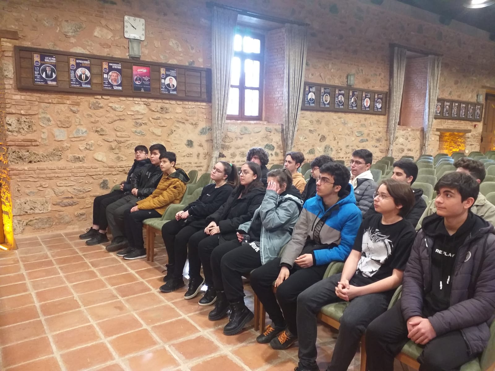 2. Murat Hüdavendigar Külliyesi’nde padişah ve aile üyelerinin türbelerini ziyaret eden gençler, medresede pek çok yazma eser, ebru ,hat, tezhip gibi islam sanatının güzel örneklerini görme fırsatı yakaladı. Bursa Tasavvuf Kütüphanesi ziyaretinde kurucu ve bağışçılardan Prof. Dr. Mustafa Kara ile tanışan gençler ilk ağızdan sorularına yanıt buldu. Osmangazi Gazi Anadolu Lisesi Müdürü Dr. İrfan Bülbül, depremzede gençleri kentle kaynaştırmak için çalışmaların süreceğini söyledi.