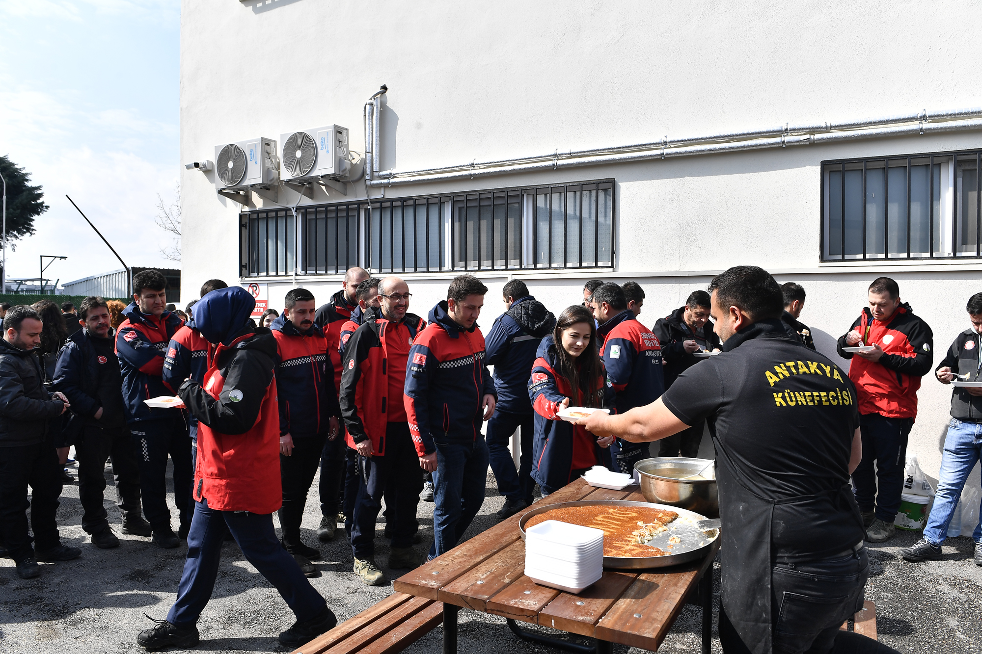 Osmangazi Belediyesi’nin Soğanlı Şantiye Birimleri’nde ocağını kurarak üzerinde ‘Mustafa Dündar’ ve ‘Osmangazi Belediyesi’ yazan künefeleri pişiren Sipahi, deprem bölgesinde yürüttükleri özverili çalışmalardan dolayı belediye personeline teşekkürlerini sundu.