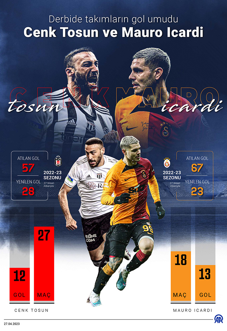 Beşiktaş’ta Cenk Tosun ve Galatasaray’da ise Mauro Icardi, bu sezon derbilerde takımlarını sırtladı.