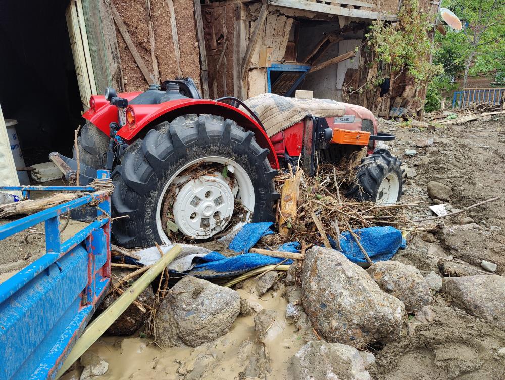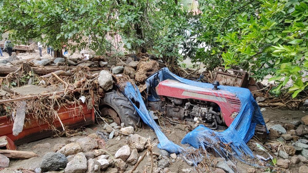 Şiddetli yağmurdan hasar gören Paşapınar’da yaşanan selin bilançosunu belirleme çalışmaları sürüyor.