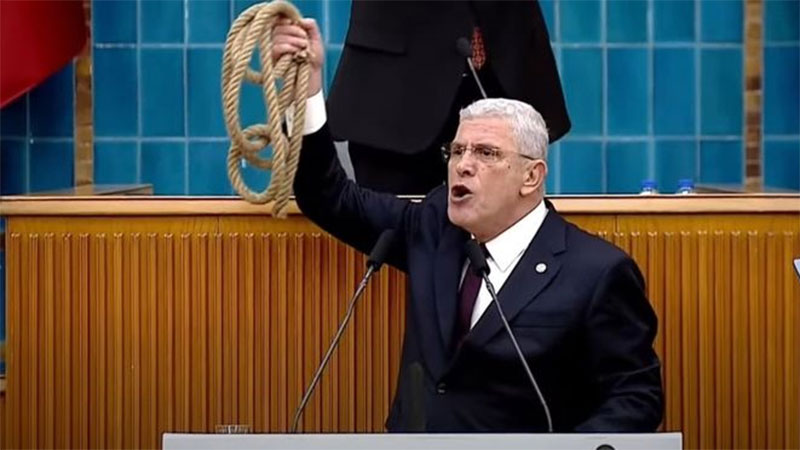 Dervişoğlu, Bahçeli’nin yıllar önce seçim meydanında ip atarak Öcalan’ın idam edilmesi çağrısını attığı iple hatırlattı.