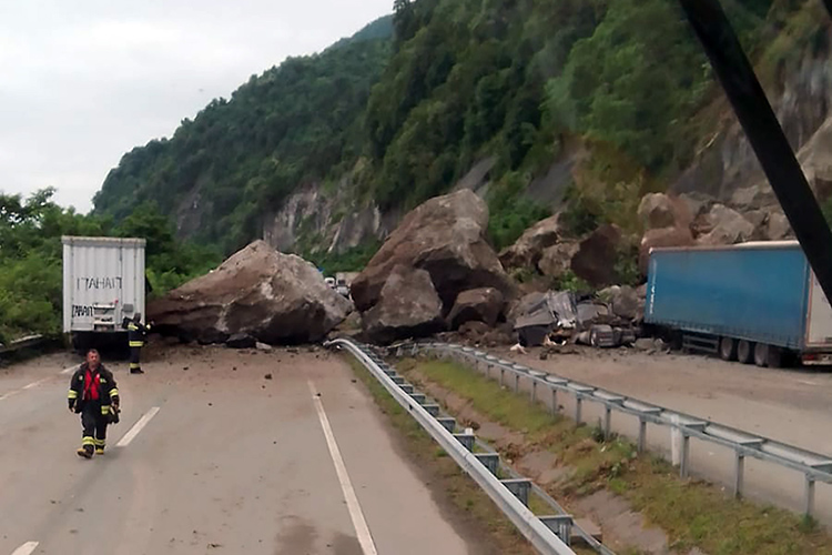 Heyelanın sürüklediği kayaların bölgedeki 4 TIR’ın üzerine düştüğünü ifade eden Doruk, ilk belirlemelere göre 1 kişinin öldüğünü, 1 kişinin de yaralandığını bildirdi.