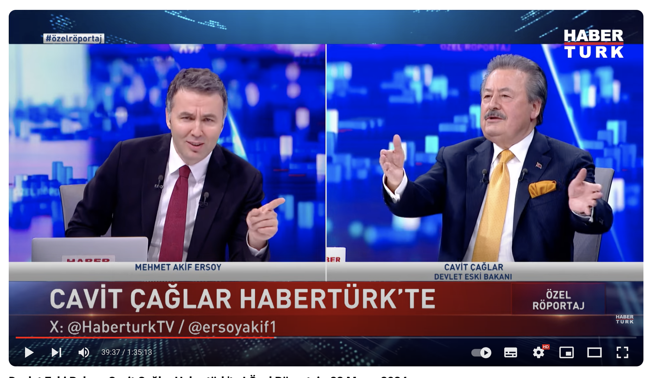 “Cavit Çağlar: Fırtınalı Bir Yaşamöyküsü’ isimli kitabıyla Türkiye’de ses getiren Devlet eski Bakanı Cavit Çağlar, Halk TV’de katıldığı ‘İsmail Küçükkaya ile Yeni Bir Sabah’ programının ardından bu kez de Habertürk TV’de Mehmet Akif Ersoy’un canlı yayın konuğu oldu.