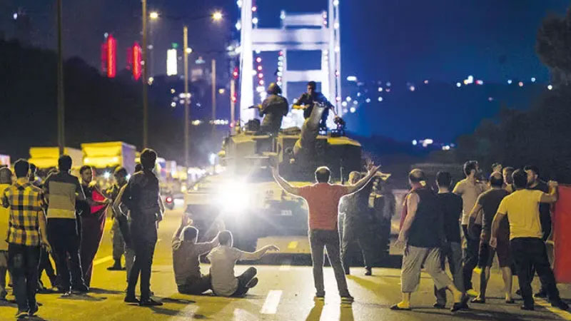 Darbeci hainler, milletin ordusuna ait tankla tüfekle saldırdı. Ancak millet, Türkiye’nin 81 ilinde demokrasiyi korumak için meydanlardaydı. Kışlaların önü, tankların çıkışını engellemek için belediye kamyonlarıyla kapatıldı. Eskişehir’den kalkan dost uçaklar, Akıncı Üssü’ndeki pistleri vurdu.