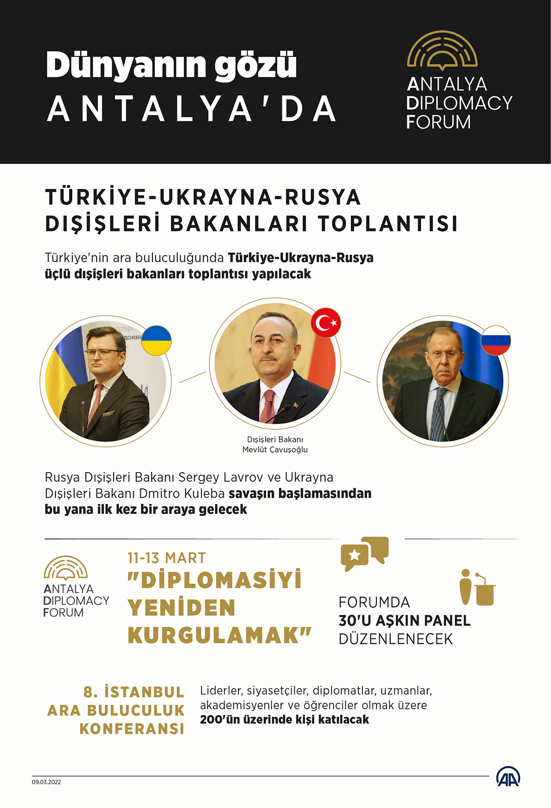 Türkiye-Rusya-Ukrayna üçlü dışişleri bakanları toplantısı, Antalya Diplomasi Forumu ve İstanbul Arabuluculuk Konferansı ile art arda liderlerin ziyaretleri, Türkiye’yi dünyada diplomasinin nabzının attığı ülke konumuna getirdi.