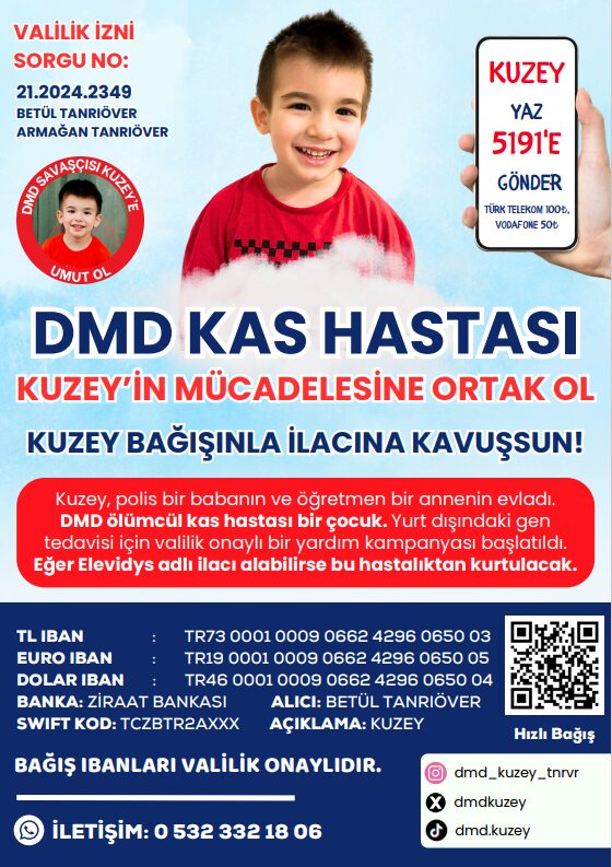 Bir kas erimesi hastalığı olan ve ilerleyen zamanlarda yayılarak bacaklarla birlikte kolları, vücudu etkileyen, 20’li yaşlarda ise ölümle sonuçlanabilen DMD hastalığının tedavisi dünyada sadece Birleşik Arap Emirlikleri’nin Dubai şehrinde yapılıyor. Oldukça yüksek maliyetli tedavi için ise 2 milyon 900 bin dolara, Türk Lirası bazında ise yaklaşık 100 milyon liraya ihtiyaç var…