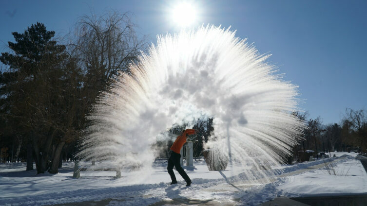 Soğuk havanın ne kadar etkili olduğunu göstermek isteyen vatandaşlar havaya sıcak su serperek test etti. Havaya serpilen suyun yere buz tanecikleri olarak düştüğü gözlemlendi.