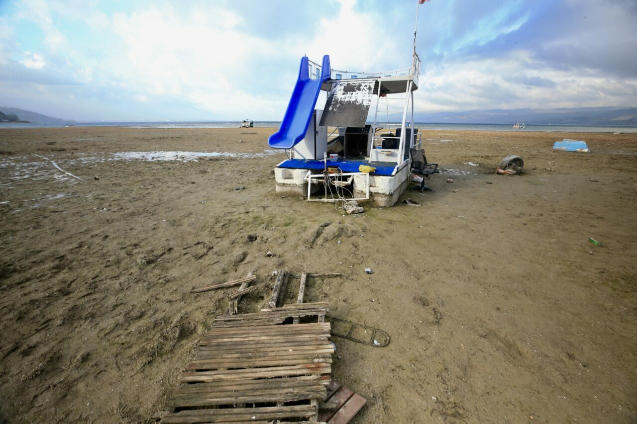 Sapanca Gölü’nün su kotunun tarihinin en düşük seviyesine gerilemesi ve kıyı kesimlerinden yaklaşık 50 metreye kadar çekilmelerin yaşanması sonucu kayıklar karaya oturdu, iskele bulunan alanlar susuz kaldı.