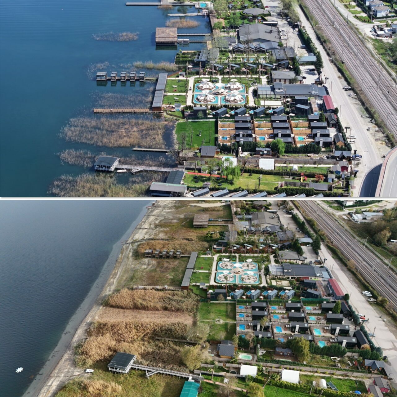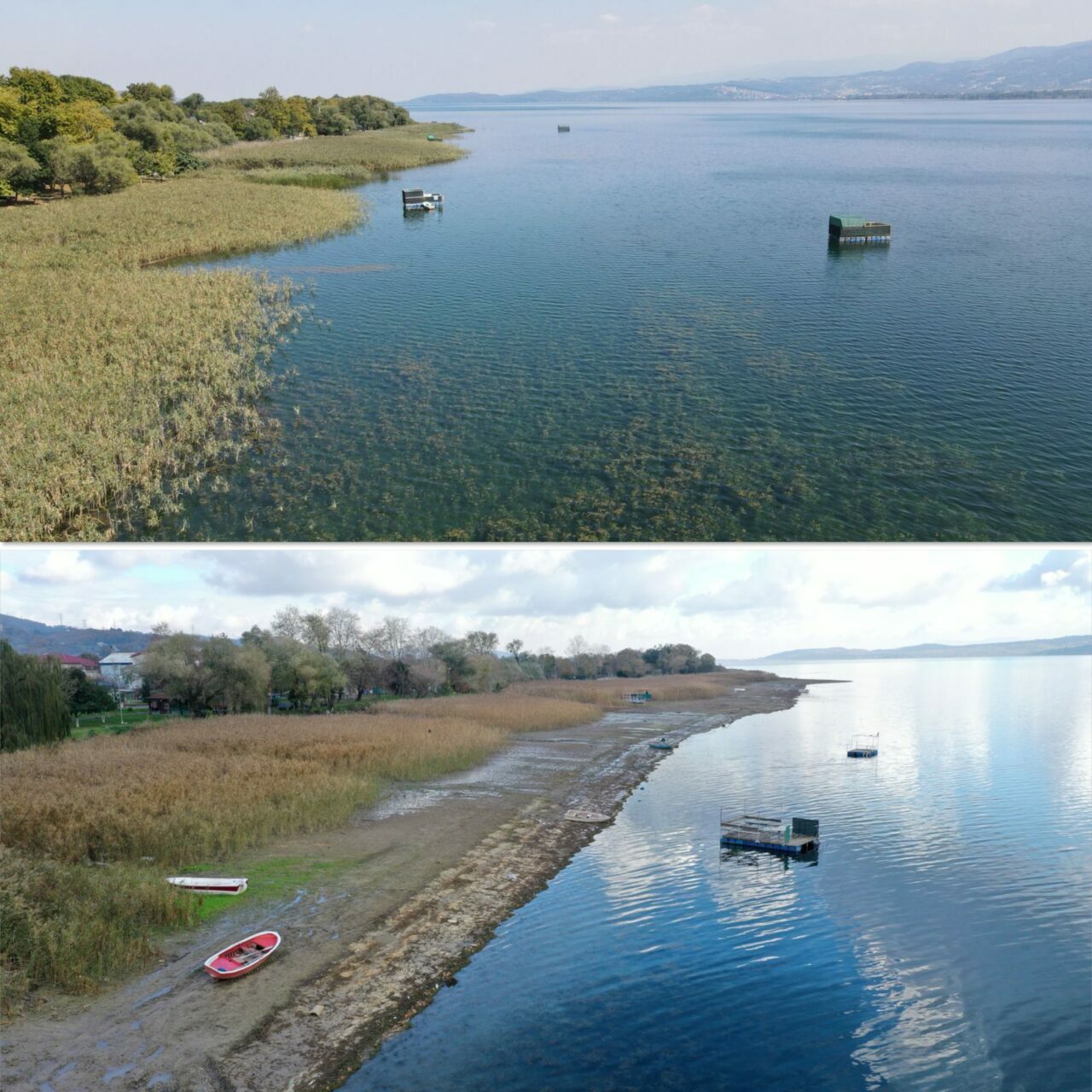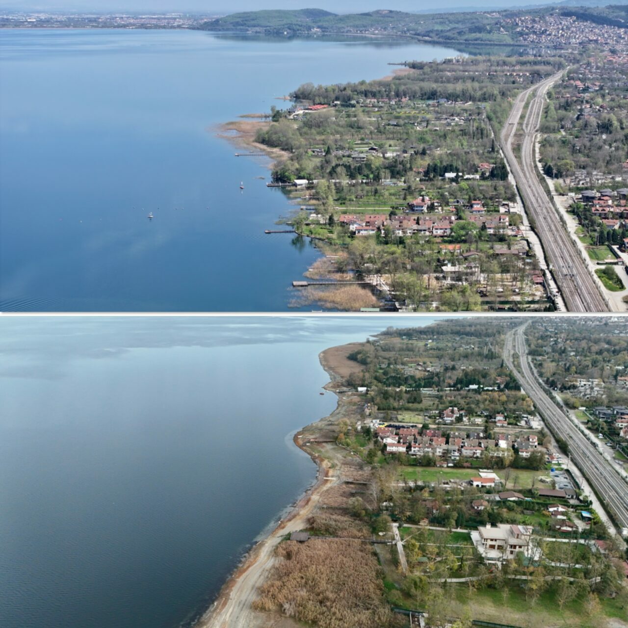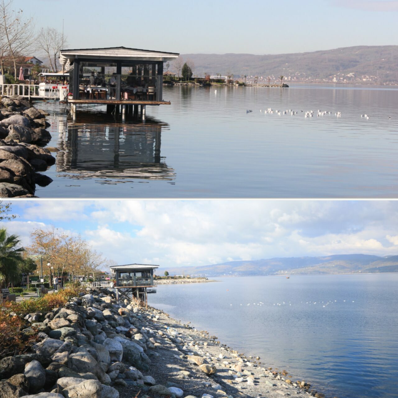 Sapanca Gölü’nün aynı açıdan çekilen eski ve yeni fotoğrafları, su kaybının boyutunu gözler önüne serdi.