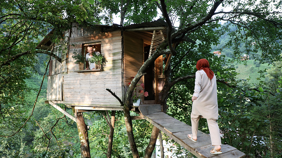 Okulunu bitiren, Ankara’da kurduğu firma ile ihracat yapan ve evlenen Çetin, eşi ile birlikte yazları Rize’ye dönerek bir aylık süreçte vaktinin büyük bölümünü ağaç evinde geçiriyor.
