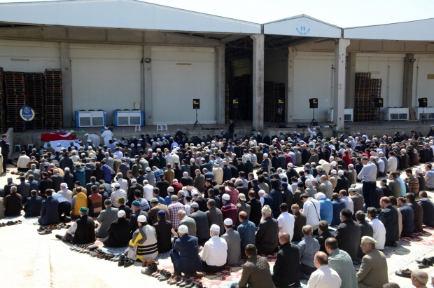Türk bayrağına sarılı tabutu önce evine, daha sonra soğuk hava deposunun önünde cenaze namazı için hazırlanan alana getirildi.