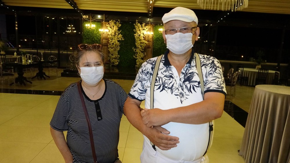 Samsun’da Samet-Ebru Atsan çiftinin düğün töreni korona virüs tedbirleri kapsamında bir düğün salonunda yapıldı. Gelinin akrabası olan şeker ve tansiyon hastası Nermin Yücebaş (56) ve Altan Yücebaş (58) çifti, takı taktıktan sonra ilginç bir yaklaşım sergileyerek corona virüse karşı farkındalık oluşturdu.