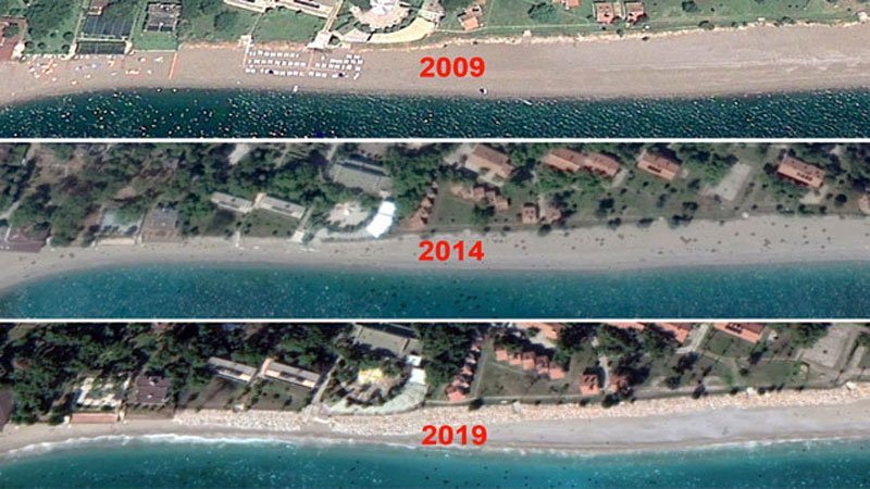 Prof. Dr. Dipova, uydudan elde ettikleri görüntüleri de paylaştı. Görüntülerde sahilin erimesi çekilen fotoğraflarla net bir şekilde görülüyor.