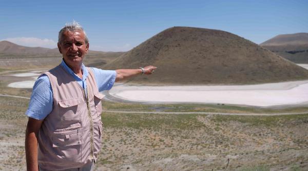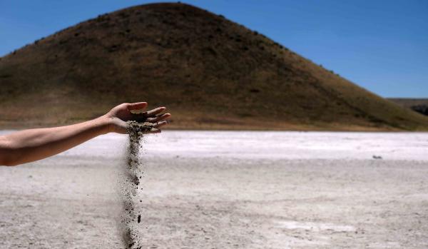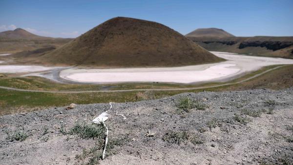 Yağışlar nedeniyle ilkbahar aylarında mikroorganizmalardan kaynaklanan, kırmızı renge boyanan ve neredeyse bir avuç su bulunan gölde şimdi sıcaklığın artıp buharlaşmanın etkisiyle bir damla bile su kalmadı.