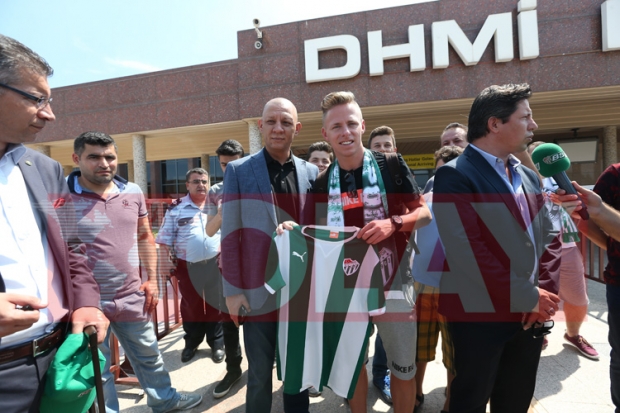 Özel uçakla Yenişehir Havaalanı’na gelen Dzsudzsak’ı, Bursaspor Kulübü Futbol Şube Sorumlusu Necmettin Kocaman, mali asbaşkan Kemal Güler ve yönetici Ahmet Eraslan ile bir grup taraftar karşıladı.