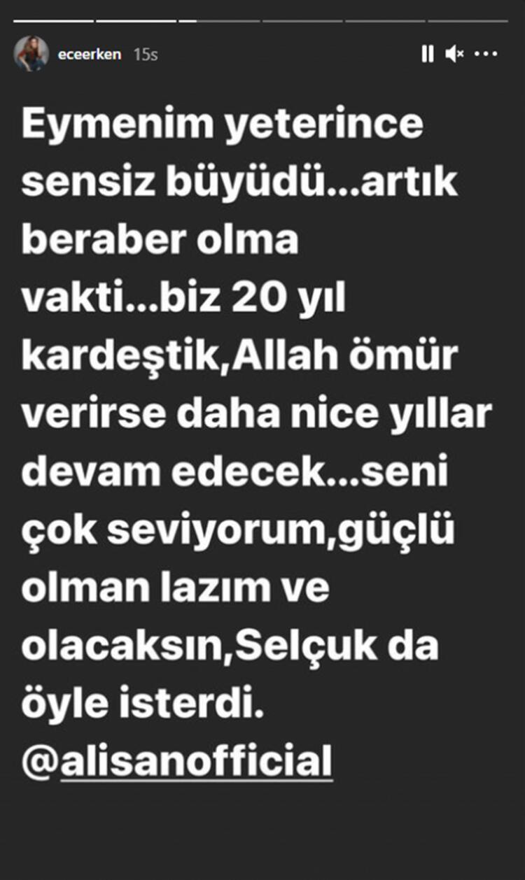 Erken, kardeşinin vefatı sonrası zor günler geçiren Alişan’a, “Eymen’im yeterince sensiz büyüdü. Artık beraber olma vakti. Biz 20 yıl kardeştik, Allah ömür verirse daha nice yıllar devam edecek”