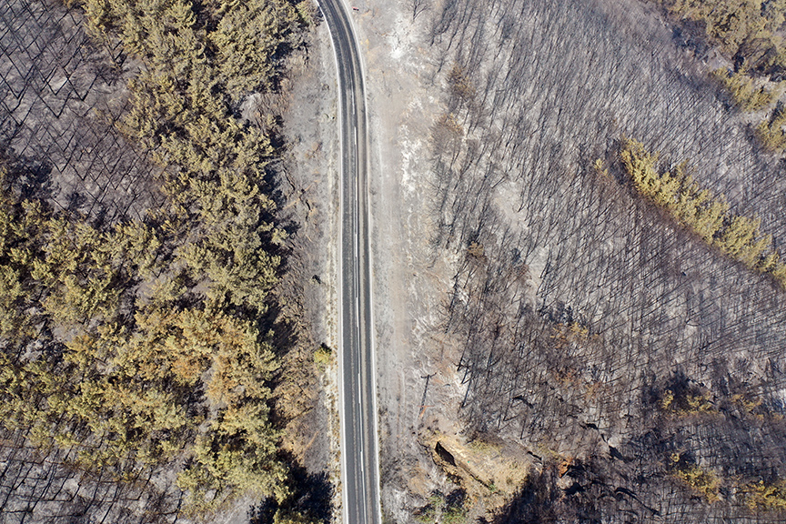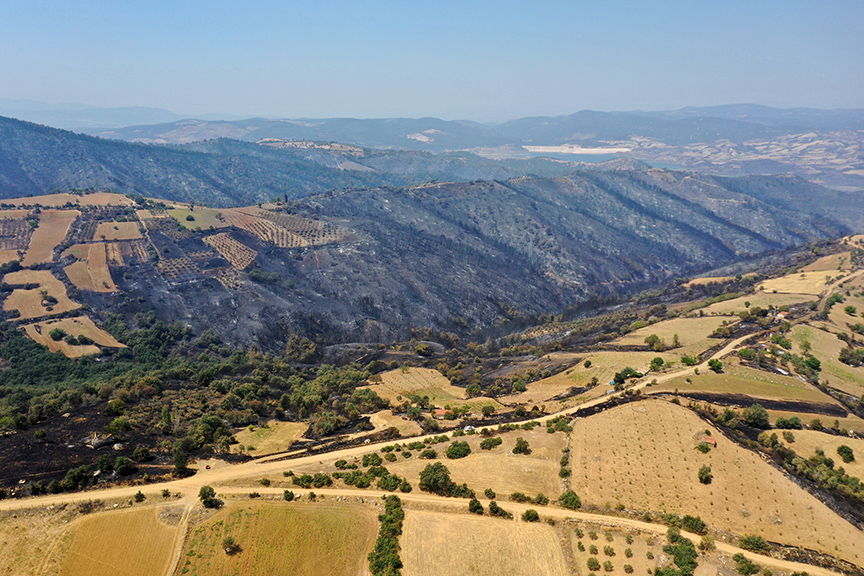 Bölgede 16 Ağustos’ta başlayan yangın 19 Ağustos’ta büyük oranda kontrol altına alındı. Yangından dolayı bölgede bazı evler yandı, hayvanlar telef oldu. Burada da yeşil renkler yerini griye bıraktı.