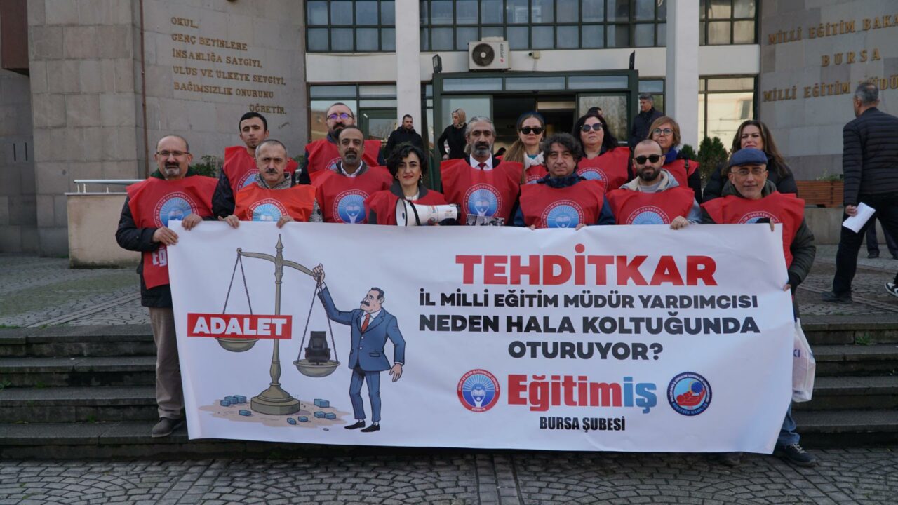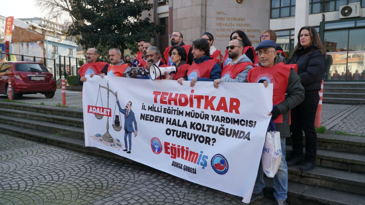 Yurdakul, Bursa İl Milli Eğitim Müdür Yardımcısı Yunus Bulut’un öğretmenlere tehditler savurduğunu iddia ederek, “Yunus Bulut, disiplin soruşturması geçiren öğretmenlere baskı yapıyor, şahitlerin ifadelerini değiştirmelerini istiyor. Öğretmenlere ‘Eğer bu öğretmen okuldan giderse hepiniz haritadan yer beğenin’ diyerek tehditlerde bulunuyor. Bu hukuksuzluklar artık kabul edilemez boyutlara ulaşmıştır” dedi. Yurdakul, yetkilileri hukuksuzluğa karşı göreve davet ederek şunları söyledi: “Sayın Valimizi imzasına sahip çıkmaya, Milli Eğitim Müdürlüğü’nü liyakatsiz kadrolardan arındırmaya davet ediyoruz. Biz Eğitim-İş olarak çocuklarımızın eğitim hakkı ve öğretmenlerimizin insanca çalışma koşulları için mücadelemize devam edeceğiz. Bursa Milli Eğitim Müdürlüğü’nün çürümüş yapısına izin vermeyeceğiz.” Eğitim-İş Bursa Şubesi, açıklamanın ardından hukuksuzluklara karşı yargı yoluna başvuracaklarını ve süreci yakından takip edeceklerini belirtti.