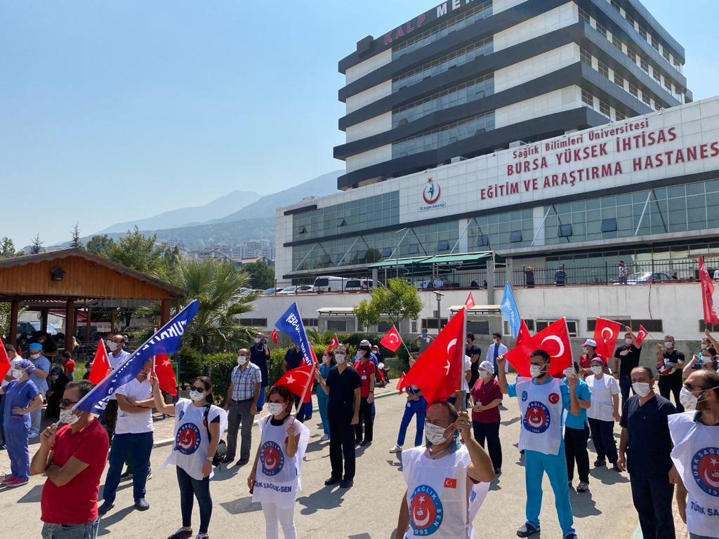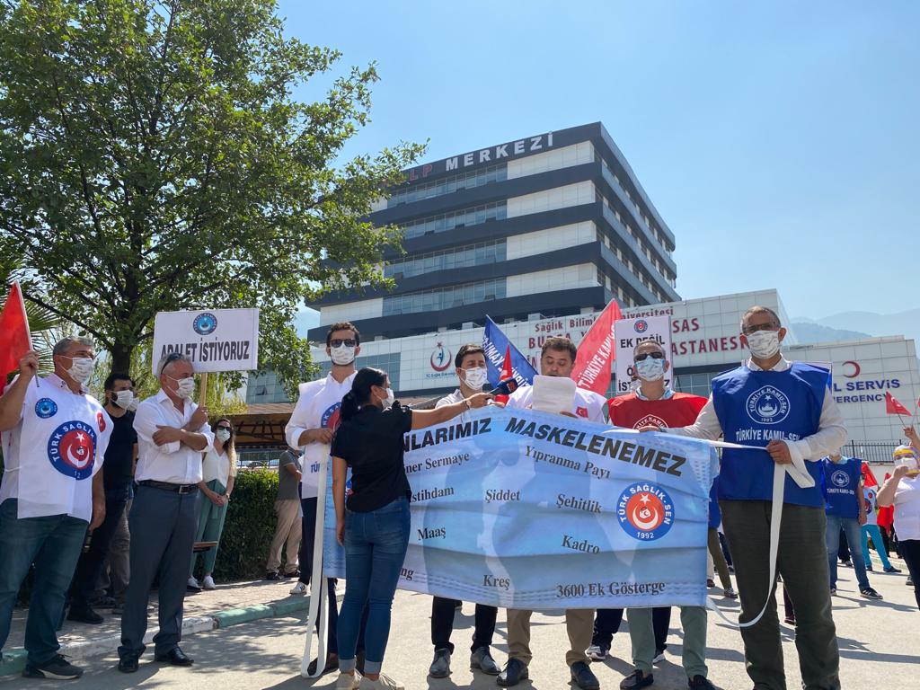 Sağlık çalışanları adına basın açıklaması yapan Türk Sağlık-Sen Şube Başkanı Sabit Karabayır, sağlık çalışanlarının salgının artığı bugünlerde yine fedakarca görevlerini ara vermeden sürdürdüğünü belirterek, ancak hepsinin mutsuz ve umutsuz olduğunu söyledi.