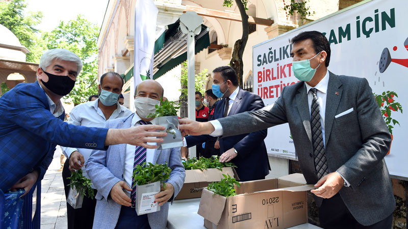 Osmangazi Belediyesi’nin “Doğada Olan, Doğal Olan Her Şey Burada” sloganıyla hayata geçirdiği Ekolojik Yaşam Merkezi’nde yetiştirilen ata tohumlarından çıkan domates, biber ve patlıcan fidelerini Başkan Dündar, Muradiye Camii’nde kılınan Cuma namazı sonrasında AK Parti Bursa Milletvekili ve MKYK Üyesi Efkan Ala, AK Parti Bursa İl Başkanı Ayhan Salman, Bursa Büyükşehir Belediye Başkanı Alinur Aktaş ve AK Parti Osmangazi İlçe Başkanı Ufuk Cömez ile birlikte vatandaşlara dağıttı. Organik yetiştirilen domates, biber ve patlıcan fidelerini alan vatandaşlar, Başkan Dündar’a teşekkür etti.