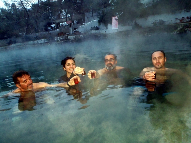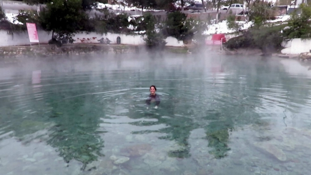 Sabah yürüyüşlerine devam eden dağcılar, Orhangazi ilçesine bağlı Keramet köyünde bulunan kaplıcaların keyfini eksi 10 derecede çıkarttı.