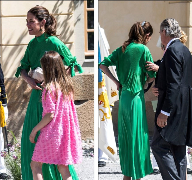 Törende prensesin erkek yeğeni Patrick Sommerlath ile evli olan 35 yaşındaki Maline Sommerlath’in giydiği yeşil elbisesinin bel bölgesindeki bağı çözülünce elbisesi açıldı ve iç çamaşırları göründü.