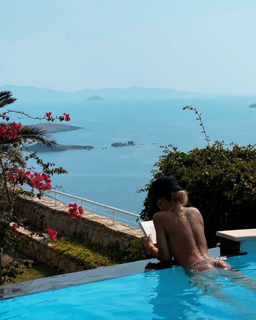 36 yaşındaki Eliz Sakuçoğlu, havuzda üstsüz kitap okuduğu anları sosyal medya hesabından takipçileriyle paylaştı.