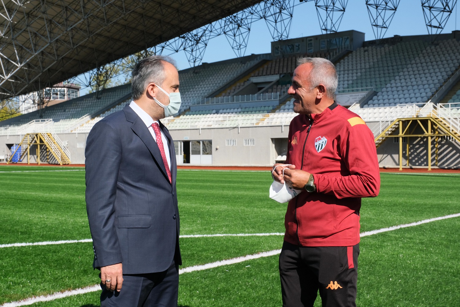 Stadın 2005 senesinde yapıldığını hatırlatan Başkan Aktaş, “Bugüne kadar yılda ortalama 250 maç oynanıyor. İdmanlar yapılıyor, spor okulları istifade ediyor. İster istemez sahada bir yıpranma söz konusu oldu. Şimdi bütünüyle elden geçirildi. Aydınlatmayla alakalı takviyeleri, boyası ve temizliği ilgi konuları görüştük. Bursa’nın birçok yerinde yeni yapımlar gerçekleştirirken, bir taraftan da 10-15 yılını doldurmuş mekanların yenilenmesiyle ilgili çalışmalar yapıyoruz. Merinos Stadı’nın zemini komple yenileniyor. İhalesi haziran ayında yapıldı. Yaklaşık 1,5 milyon liralık bedel harcandı. Bunun bir milyon liralık kısmı Spor Toto teşkilatından Gençlik ve Spor Bakanı Muharrem Kasapoğlu’nun destekleriyle alındı. Bursamıza, sporseverlere ve futbolseverlere hayırlı uğurlu olsun” dedi.