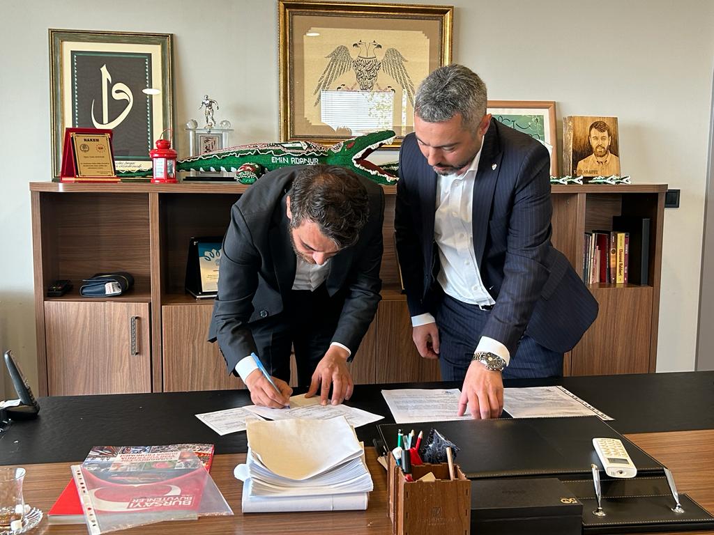 Emin Adanur’un Atatürk Kent Ormanı’ndaki ofisinde gerçekleşen ziyarette Bursaspor Başkanı Ömer Furkan Banaz’ın yanı sıra Futbol Şube Sorumlusu Mehmet Zahit Yanar, Asbaşkanlardan Rıdvan Gültekin, yönetim kurulu üyelerinden Selim Yolgeçen, Ramazan Çetinkaya, Semih Şevik, Metin Alp ve Kulüp Genel Müdürü Nihal Ferik de hazır bulundu bulundu.