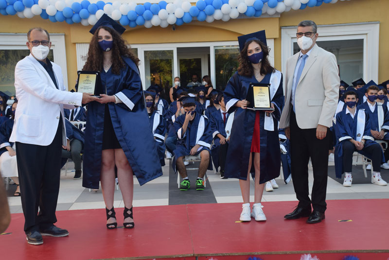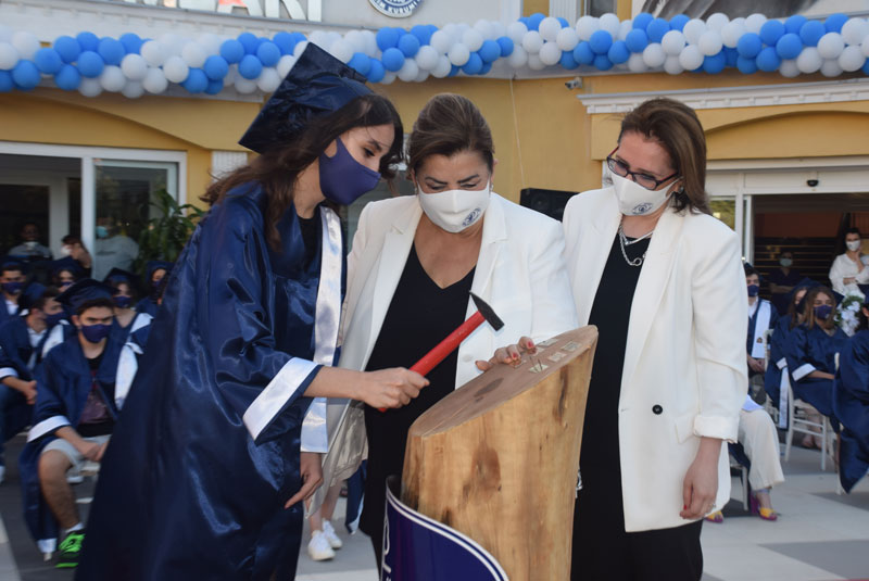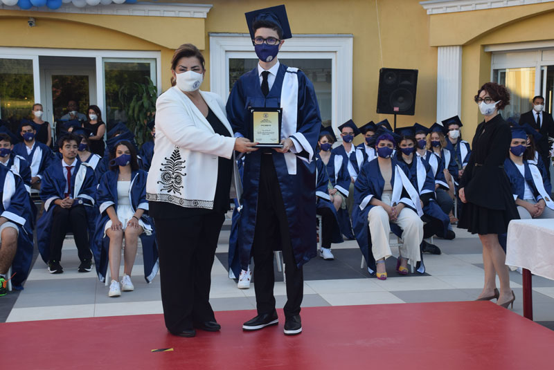 Bu yıl mezun olan öğrencilerimiz adına Şebnem İnci Yalçın ve Ege Saydam yaptıkları konuşmada mezun olmanın coşkusu ile okuldan ayrılmanın hüznünü birlikte yaşadıklarını ifade ettiler. 12. sınıf öğrencilerini temsilen Batuhan Yılmaz ve Yağmur Çevik bayrak ile okul flamasını 11. sınıf öğrencilerinden Doğan Emre Sayıner ve İpek Naz Evrensel’e devrettiler. Özel Emine Örnek Fen Lisesi 2020-2021 dönemi okul üçüncüsü İpek Beril Şen’e ve Özel Emine Örnek Anadolu Lisesi 2020-2021 dönemi okul üçüncüsü Deniz Çelik’e plaketlerini Emine Örnek Eğitim Kurumları Yönetim Kurulu Üyesi ve Finans Müdürü İsmet Demirel ve Emine Örnek Eğitim Kurumları Yönetim Kurulu Üyesi Cemal Demirel taktim ettiler. Özel Emine Örnek Fen Lisesi dönemi okul ikincisi Yusuf Kerem Kırbaş’a ve Özel Emine Örnek Anadolu Lisesi okul ikincisi Olcaynaz Tekmen’e plaketlerini okul kurucularımızdan Dr. Mahmut Nedim Örnek takdim etti. Özel Emine Örnek Fen Lisesi 2020-2021 dönemi okul birincisi Şebnem İnci Yalçın’a ve Özel Emine Örnek Anadolu Lisesi 2020-2021 dönemi okul birincisi Ege Saydam’a ise plaketlerini Özel Emine Örnek Eğitim Kurumları Kurucu Müdür’ü Emine Örnek takdim etti. Daha sonra birinci olan öğrenciler, Kurucu Müdür Emine Örnek ve Lise Müdürü Hacer Koşar ile birlikte okul yaş kütüğüne hatıra plaketini çaktılar.